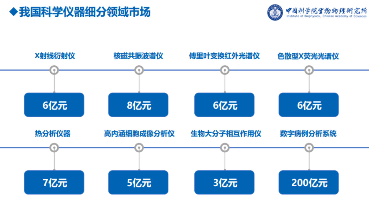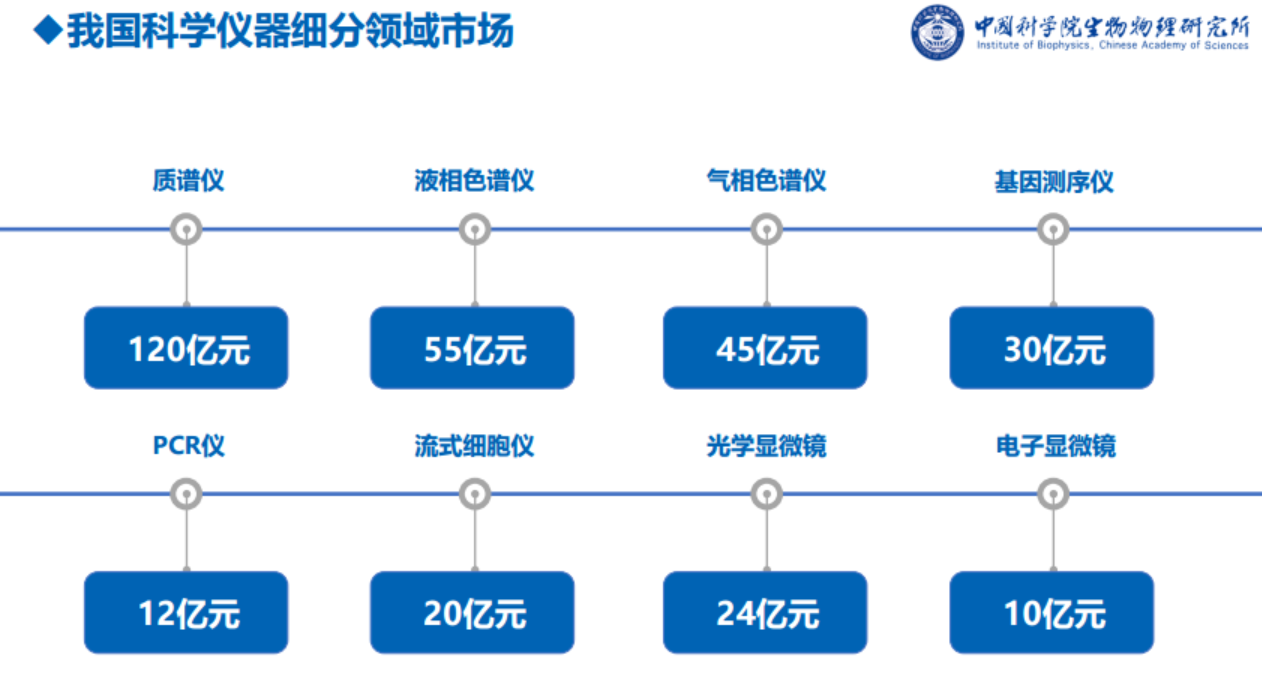 不過,值得注意的是,我國目前90%高端儀器依賴進(jìn)口,分析人士表示,國產(chǎn)儀器與國際水平有一定差距,具體原因有,國產(chǎn)品牌技術(shù)上與國外品牌的差距仍然很大;國產(chǎn)儀器的零部件不過關(guān);國產(chǎn)儀器的配套和周邊建設(shè)不到位;科學(xué)研究本身具有試錯成本超高的特性。