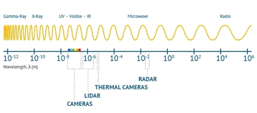 主動(dòng)傳感器,主要依靠信號(hào)的飛行時(shí)間(ToF)原理感知環(huán)境。ToF通過(guò)等待信號(hào)的反射,測(cè)量信號(hào)從源到目標(biāo)的傳播時(shí)間。因此,這類傳感器所用信號(hào)的頻率決定了系統(tǒng)所用的能量及感知精度。超聲波雷達(dá)、毫米波雷達(dá)、激光雷達(dá)均屬于主動(dòng)傳感器范疇。