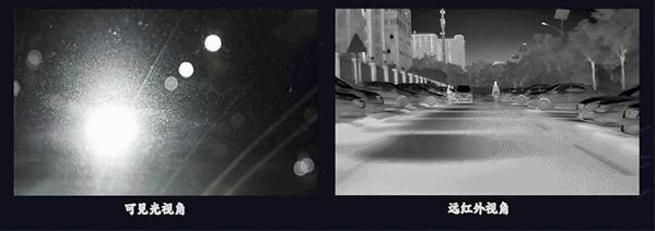 同為被動(dòng)傳感器的遠(yuǎn)紅外攝像頭,可探測(cè)8μm至14μm之間的紅外波段,敏銳感知人和動(dòng)物等熱源物體。在光線差,或者隧道末端、逆光等峰值照明情況下,普通攝像頭往往失效,而紅外攝像頭則能全時(shí)成像,提供有效感知。