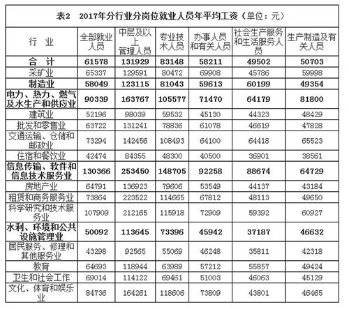 最近,國家統(tǒng)計局公布了2017年規(guī)模以上企業(yè)就業(yè)人員分崗位年平均工資情況。根據(jù)報告顯示,2017年全部規(guī)模以上企業(yè)就業(yè)人員年平均工資為61578元,比2016年增長7.3%,其中制造業(yè)平均工資為58049元。
