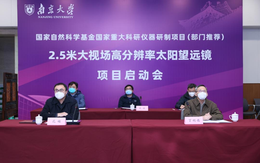 近日,由南京大學主持的國家自然科學基金重大科研儀器研制項目(部門推薦)“2.5米大視場高分辨率太陽望遠鏡”啟動儀式在南京以線下線上相結(jié)合的形式舉行。南京大學校長呂建院士、國家自然科學基金委員會副主任謝心澄院士、數(shù)理學部常務副主任董國軒研究員、教育部科學技術與信息化司副司長張國輝、南京大學天文與空間科學學院方成院士、國家天文臺臺長常進院士、南京天文光學技術研究所崔向群院士、國家天文臺汪景琇院士、云南天文臺韓占文院士、紫金山天文臺史生才院士等在線參加會議。啟動儀式由南京大學副校長陸延青教授主持。