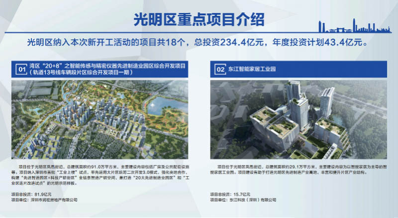 1月29日,深圳市高質(zhì)量發(fā)展大會(huì)暨2023年首批重大項(xiàng)目開工儀式舉行,本次新開工項(xiàng)目共266個(gè),總投資約3295.3億元,年度計(jì)劃投資約535.6億元。其中,光明區(qū)分會(huì)場(chǎng)啟動(dòng)18個(gè)新開工項(xiàng)目,總投資234.4億元。