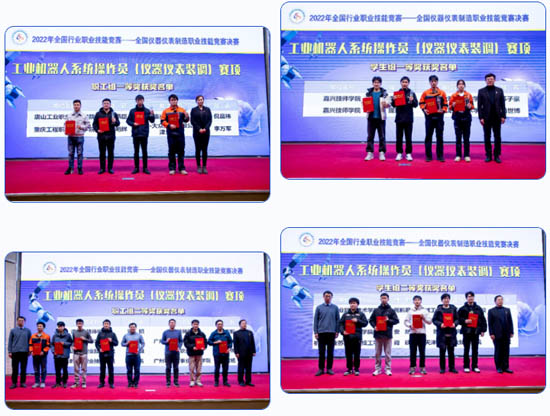 工業(yè)機(jī)器人系統(tǒng)操作員(儀器儀表裝調(diào))賽項(xiàng)競(jìng)賽平臺(tái)為面向具有測(cè)控技術(shù)高度集成的智能制造設(shè)備——工業(yè)機(jī)器人,突出儀器儀表在智能制造、新興產(chǎn)業(yè)、智慧運(yùn)維中的關(guān)鍵作用。本次大賽分為理論競(jìng)賽和實(shí)操競(jìng)賽兩部分,在3天的比賽中,參賽選手頑強(qiáng)拼搏、奮勇爭(zhēng)先,充分體現(xiàn)了我國(guó)制造業(yè)技能人才精益求精、追求卓越的工匠精神,經(jīng)過(guò)激烈比拼,產(chǎn)生一、二、三等獎(jiǎng)。