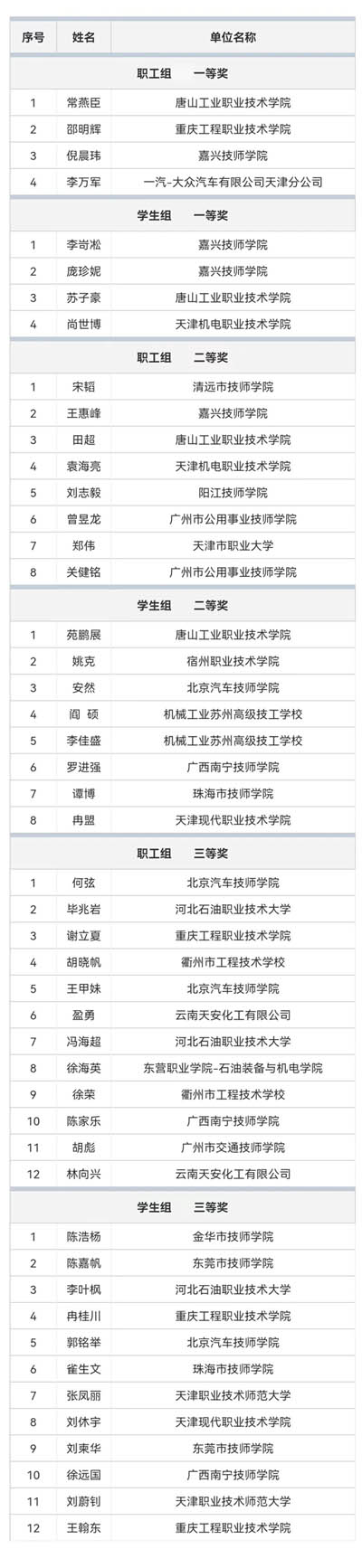 工業(yè)機(jī)器人系統(tǒng)操作員(儀器儀表裝調(diào))賽項(xiàng)獲獎(jiǎng)名單