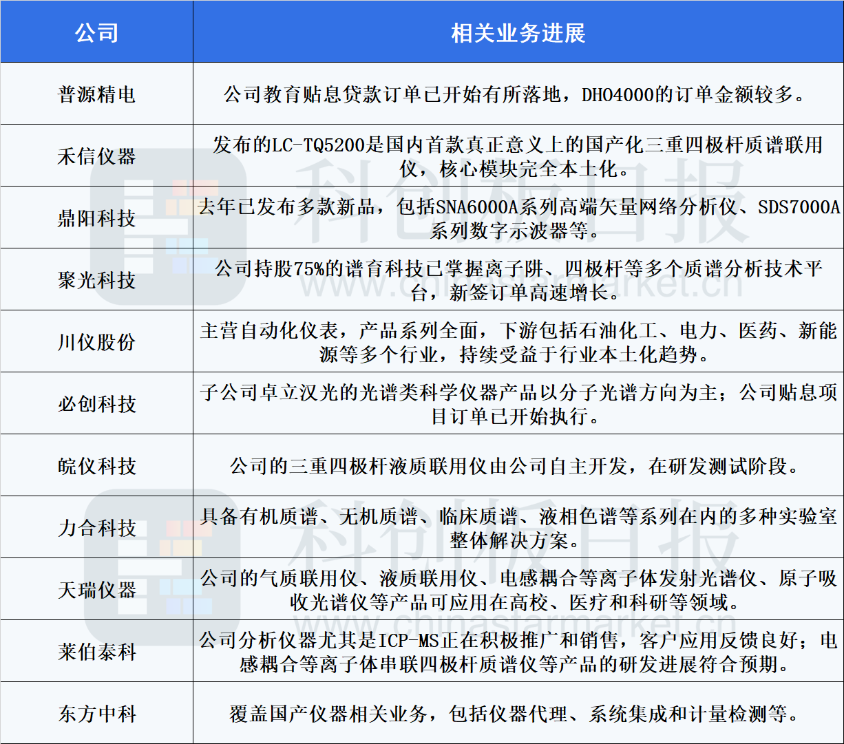 據(jù)《科創(chuàng)板日報》不完全整理,國內(nèi)布局科學(xué)儀器的企業(yè)主要包括: