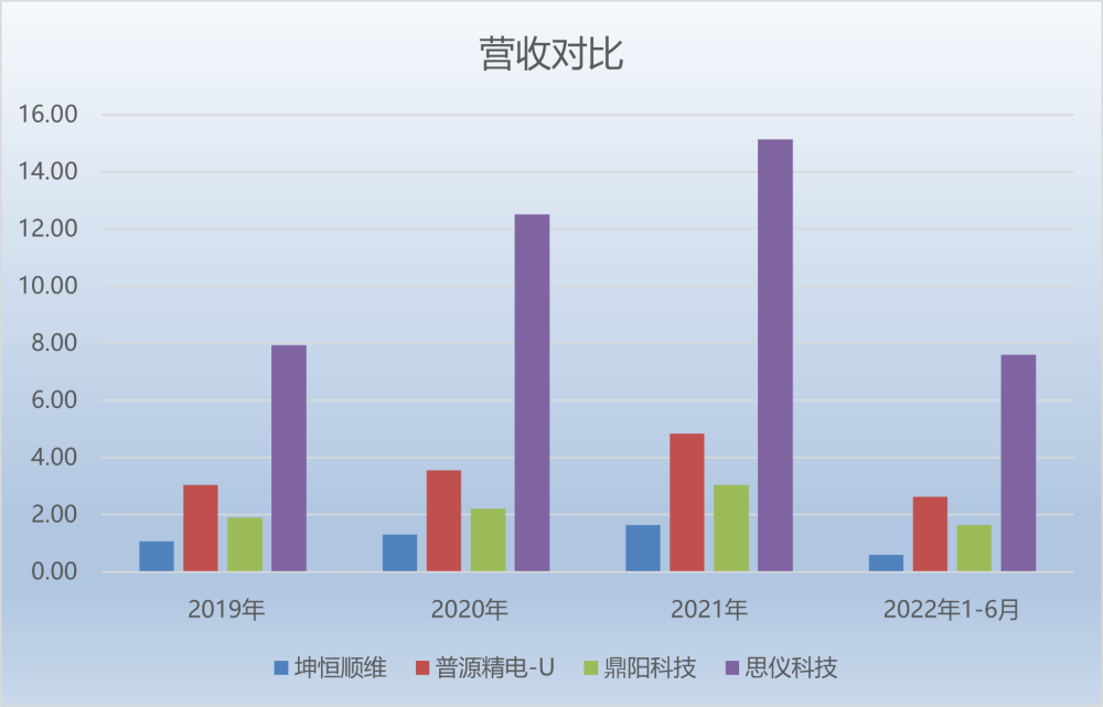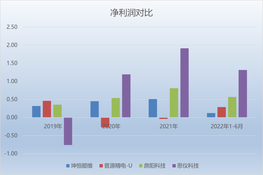 不難看出,思儀科技自2020年成功扭虧之后,凈利潤(rùn)便一路高歌猛進(jìn),大幅穩(wěn)步增長(zhǎng)。通過上圖對(duì)比各競(jìng)對(duì)來看,思儀科技無論是營(yíng)收規(guī)模還是凈利潤(rùn)均是遙遙領(lǐng)先。