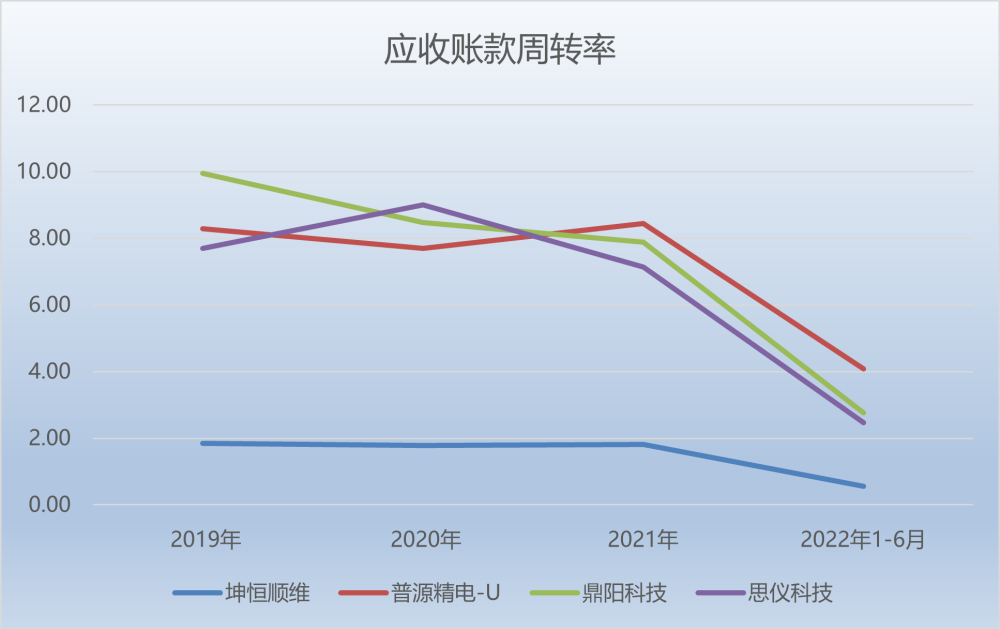 也就是說,應(yīng)收賬款周轉(zhuǎn)率的下降,不僅僅出現(xiàn)在思儀科技一家公司身上,這是行業(yè)普遍現(xiàn)象。