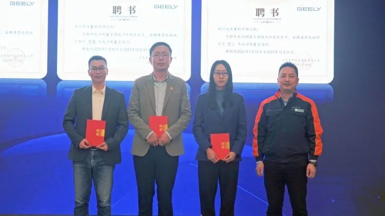 儀式現(xiàn)場,吉利汽車集團副總裁楊奎為省計量院陳寧、陳歡、繆建三名高級工程師頒發(fā)“測量咨詢師”聘書。測量咨詢師作為省計量院和吉利汽車的中樞紐帶,將著力提升吉利汽車的測量管理能力和技術水平。