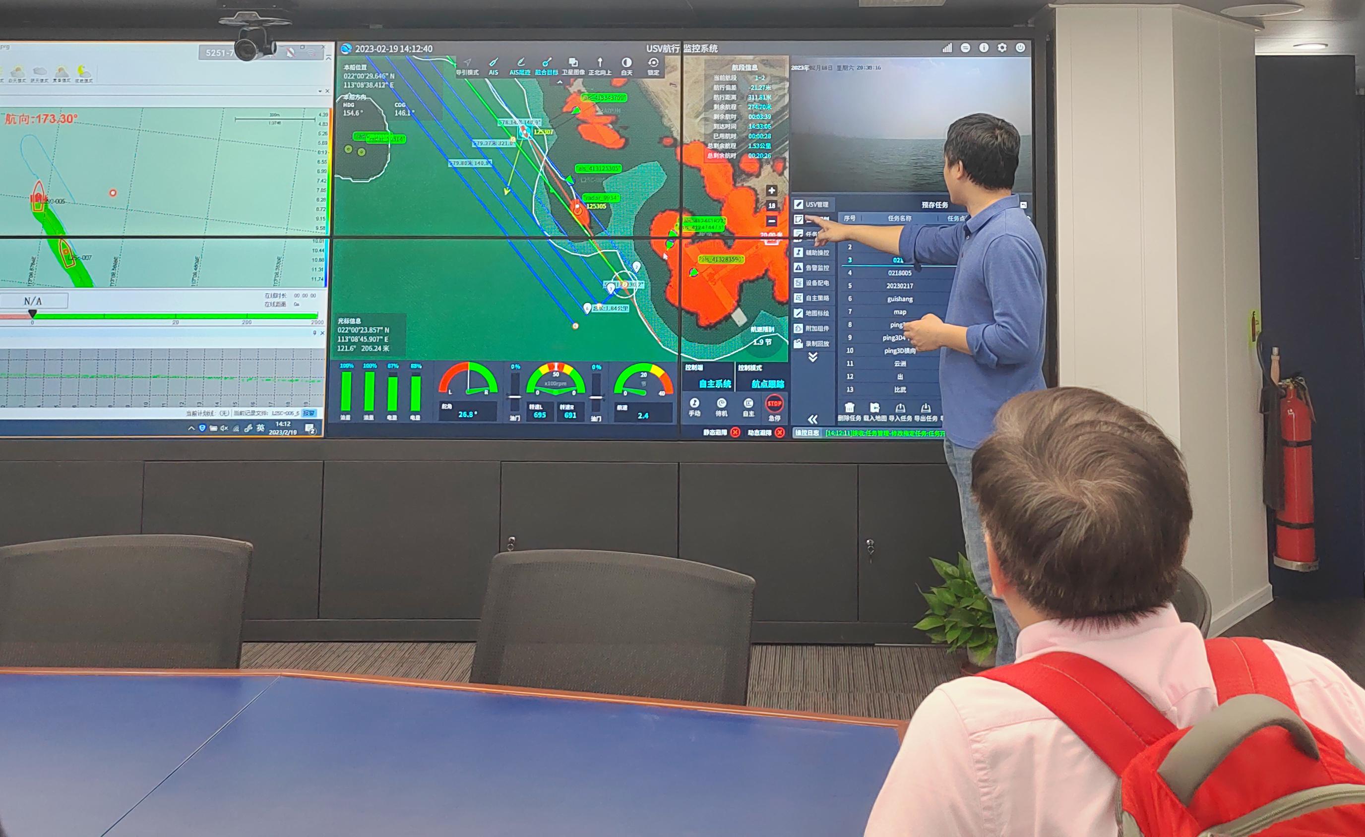唐梓力講解 “珠海云”上的無(wú)人船監(jiān)控界面