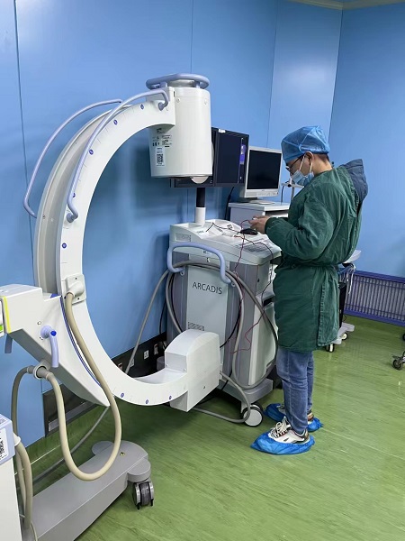 圖說:檢測人員正在現場檢定醫(yī)用診斷X射線輻射源(C形臂)