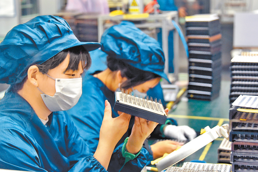 6月10日,社旗縣森霸傳感科技股份有限公司生產(chǎn)車間,工人正在趕制傳感器電子元器件訂單。申鴻皓 攝