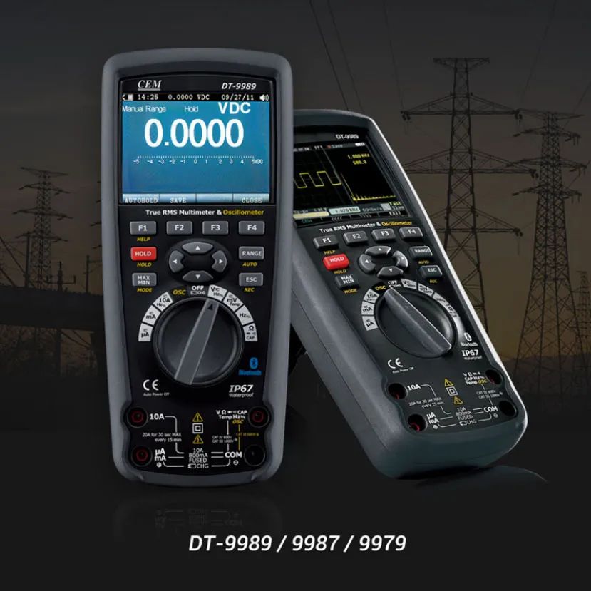 CEM華盛昌DT-9989專業(yè)彩屏數(shù)字示波萬用表是一款高性能高精度真有效值數(shù)字萬用表,采用彩色TFT LCD顯示屏、帶有示波器、數(shù)據(jù)存儲(chǔ)、趨勢(shì)記錄、波形記錄、通道波形與FFT波形同時(shí)分屏顯示功能,支持波形文件通過藍(lán)牙無線傳輸至上位機(jī)操作。能夠輕松快速的檢測(cè)出電子設(shè)備、自動(dòng)化設(shè)備、配電工程以及電子工程設(shè)備中的異常問題,大大提高了工程人員的工作效率,而且它還具有IP67防水、防塵功能,能夠在不同環(huán)境條件下使用。