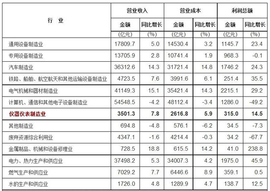 6月28日,國家統(tǒng)計局發(fā)布了全國規(guī)模以上工業(yè)企業(yè)實現(xiàn)利潤總額增長狀況。1—5月份,全國規(guī)模以上工業(yè)企業(yè)實現(xiàn)利潤總額26688.9億元,同比下降18.8%,降幅比1—4月份收窄1.8個百分點。其中,1-5月份全國規(guī)模以上儀器儀表制造企業(yè)實現(xiàn)利潤總額315.0億元,同比增長14.5%。