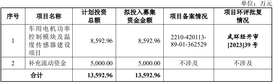 根據規(guī)劃,車用電機功率控制模塊及溫度傳感器建設項目總投資8592.96萬元,項目建設期24個月。項目達產后預計實現年產500萬個車用電機功率控制模塊和5000萬個溫度傳感器,預計實現年銷售收入2.3億元,實現年凈利潤2838.86萬元。