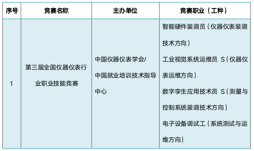 近日,人力資源和社會(huì)保障部發(fā)布《關(guān)于組織開展2023年全國(guó)行業(yè)職業(yè)技能競(jìng)賽的通知》,對(duì)2023年全國(guó)行業(yè)職業(yè)技能競(jìng)賽計(jì)劃作出了安排,全年擬組織開展一類職業(yè)技能大賽10項(xiàng)、二類職業(yè)技能競(jìng)賽44項(xiàng)。中國(guó)儀器儀表學(xué)會(huì)將組織舉辦“第三屆全國(guó)儀器儀表行業(yè)職業(yè)技能競(jìng)賽”(國(guó)家二類賽),此外中國(guó)儀器儀表學(xué)會(huì)也將積極參與中機(jī)聯(lián)主辦的“第五屆全國(guó)智能制造應(yīng)用技術(shù)技能大賽儀器儀表制造工(智能制造傳感技術(shù)方向)賽項(xiàng)”。