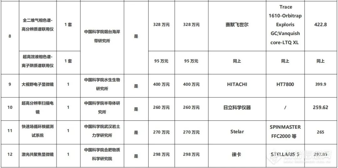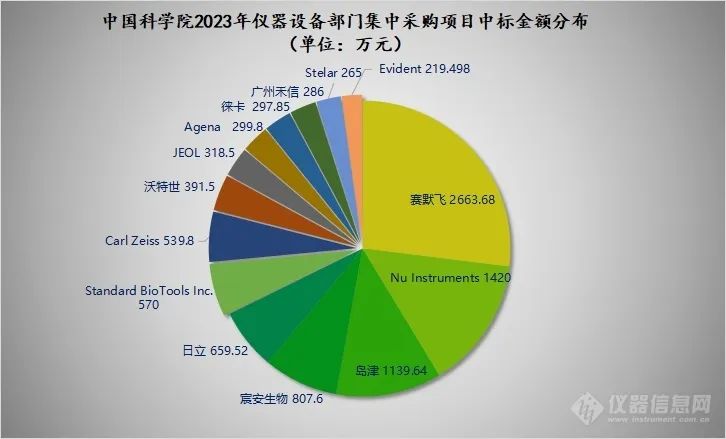此前,中國(guó)科學(xué)院發(fā)布“2023年儀器設(shè)備部門集中采購(gòu)項(xiàng)目”招標(biāo)公告,共分28包,預(yù)算1.335億元,集中采購(gòu)18套質(zhì)譜、8套電鏡、2套核磁及1套拉曼設(shè)備。近日該項(xiàng)目公布中標(biāo)結(jié)果,日本電子、島津、賽默飛、Nu Instruments、日立科學(xué)儀器、沃特世、徠卡等知名外企分得大單,總中標(biāo)金額接近9000萬(wàn)元。賽默飛憑借3臺(tái)質(zhì)譜1臺(tái)電鏡、2663.68的中標(biāo)金額拔得頭籌。