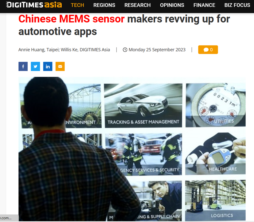 近日,DIGITIMES Asia一份報告稱,伴隨中國汽車銷量持續(xù)增長及其智能系統(tǒng)加速迭代,中國MEMS傳感器制造商正加速汽車應(yīng)用的研發(fā)。
