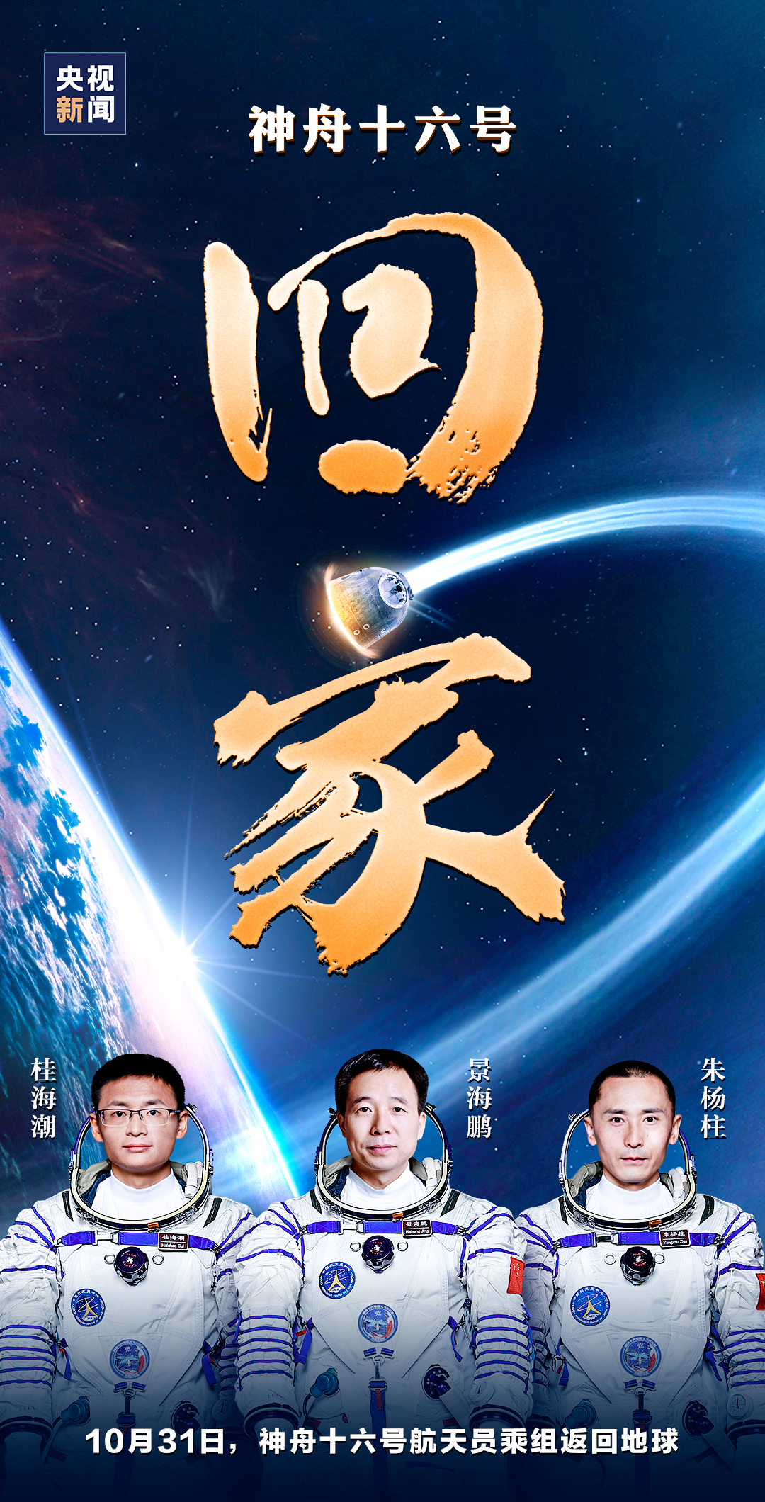 北京時(shí)間2023年10月31日8時(shí)11分,神舟十六號載人飛船返回艙在東風(fēng)著陸場成功著陸,現(xiàn)場醫(yī)監(jiān)醫(yī)保人員確認(rèn)航天員景海鵬、朱楊柱、桂海潮身體健康狀況良好,神舟十六號載人飛行任務(wù)取得圓滿成功。