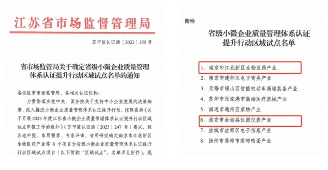 本報訊 (王 棟 王禮亞 記者 胡錫豐)日前,江蘇省金湖縣儀器儀表產業(yè)被確定為江蘇首批8個省級小微企業(yè)質量管理體系認證提升行動區(qū)域試點項目之一,是淮安市唯一入選項目。