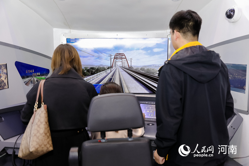 家長帶孩子體驗(yàn)高鐵自動駕駛。人民網(wǎng) 張毅力攝