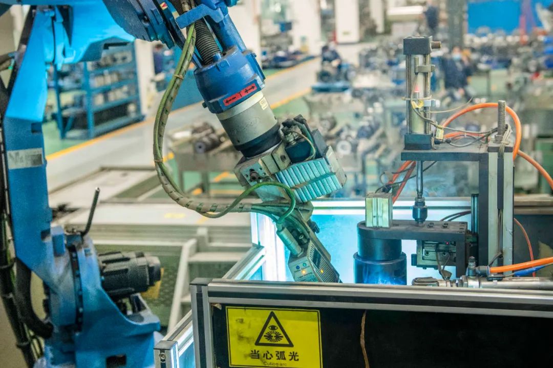 (重慶川儀自動化股份有限公司流量儀表生產(chǎn)車間,機器人正在焊接傳感器。 張錦輝 攝,來源:重慶市經(jīng)濟信息委)