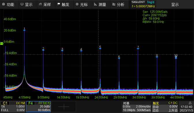 同時,其數(shù)學分析能力也十分強大,內(nèi)置FFT功能,最大運算點數(shù)可達2M點,并具有4條獨立Math波形,支持用戶自定義運算表達式,在優(yōu)越的頻譜分辨率下可更準確的分析信號頻率成分及能量分布。