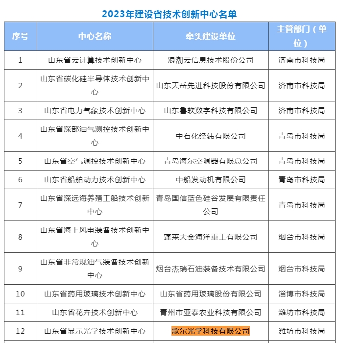 近日,山東省科技廳發(fā)布2023年山東省技術(shù)創(chuàng)新中心名單。名單顯示,山東省顯示光學(xué)技術(shù)創(chuàng)新中心正式獲批建設(shè)。