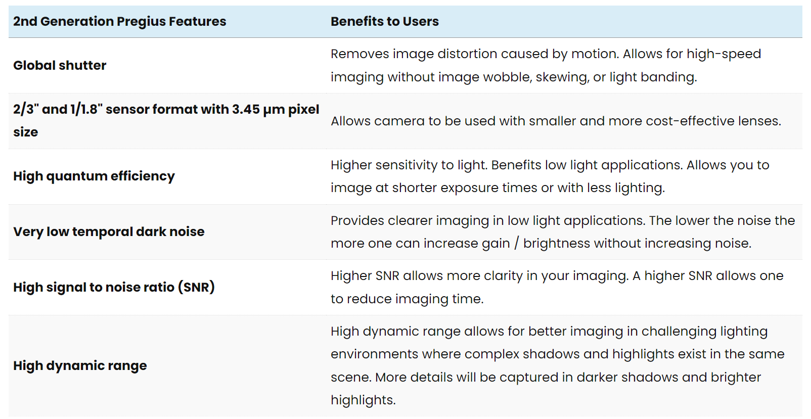 隨著首款Pregius IMX174傳感器的成功,索尼從傳統(tǒng)的CCD轉(zhuǎn)向更先進(jìn)的CMOS傳感器。第二代Pregius傳感器包括3.2 MP IMX265和5.0 MP IMX264。第一代Pregius傳感器尺寸為1/1.2 ",像素尺寸為5.86 μm。相比之下,第二代傳感器尺寸更小,為3.45 μm。尺寸越小允許兼容的鏡頭更具有成本效益。隨著索尼在STARVIS系列中改進(jìn)其滾動(dòng)快門(mén)CMOS技術(shù),使得Pregius仍然是全球快門(mén)CMOS性能方面的前列。