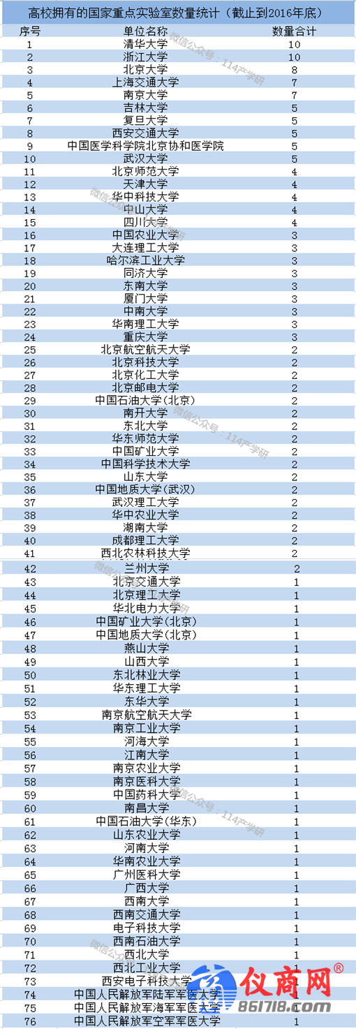 下面看看各高校國(guó)家重點(diǎn)實(shí)驗(yàn)室的數(shù)量統(tǒng)計(jì)(數(shù)據(jù)來源于科技部發(fā)布的報(bào)告;共建的國(guó)家重點(diǎn)實(shí)驗(yàn)室按各共建單位各有一個(gè)進(jìn)行統(tǒng)計(jì);科技部發(fā)布的報(bào)告中國(guó)家重點(diǎn)實(shí)驗(yàn)室不包括省部共建國(guó)家重點(diǎn)實(shí)驗(yàn)室和企業(yè)國(guó)家重點(diǎn)實(shí)驗(yàn)室;統(tǒng)計(jì)數(shù)據(jù)時(shí)未去掉2017年評(píng)估未通過的國(guó)家重點(diǎn)實(shí)驗(yàn)室名單,數(shù)據(jù)統(tǒng)計(jì)于青塔):