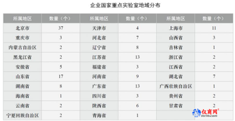 企業(yè)國(guó)家重點(diǎn)實(shí)驗(yàn)室地域分布