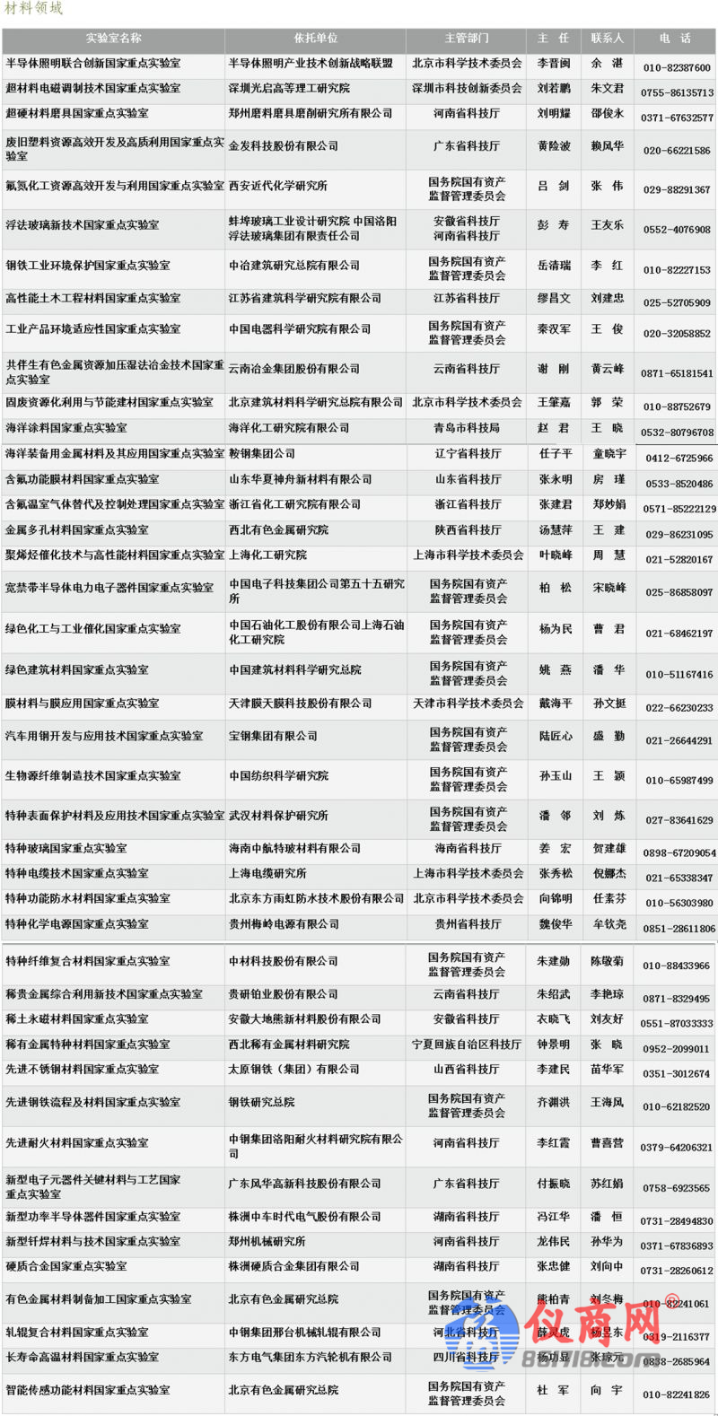 企業(yè)國(guó)家重點(diǎn)實(shí)驗(yàn)室通訊錄(截止至2016年底)