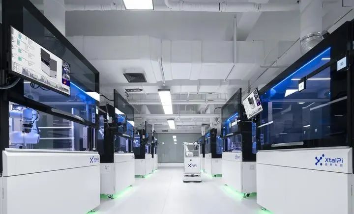 深港之間的河套深港科技創(chuàng)新合作區(qū)深圳園區(qū)內(nèi),深圳晶泰科技有限公司的工廠里,機(jī)器人工作站排成整齊的方陣。在玻璃圍成的工作臺(tái)上,機(jī)械臂熟練地操作試劑和粉末的稱(chēng)量、取樣,準(zhǔn)確地完成一步步化學(xué)合成反應(yīng),實(shí)現(xiàn)了端到端的智能化自動(dòng)化。