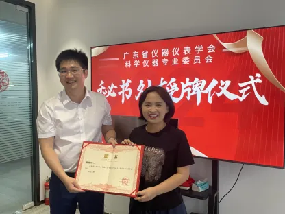 在儀式上,學(xué)會秘書處授牌儀式莊嚴而溫馨。來自暨南大學(xué)的薛江紅秘書長作為學(xué)會代表出席并為新上任的各位學(xué)會秘書處副秘書長頒發(fā)了聘書。同時廣東省儀器儀表學(xué)會常務(wù)副秘書長邵時先生也出席了會議并發(fā)表了重要講話。
