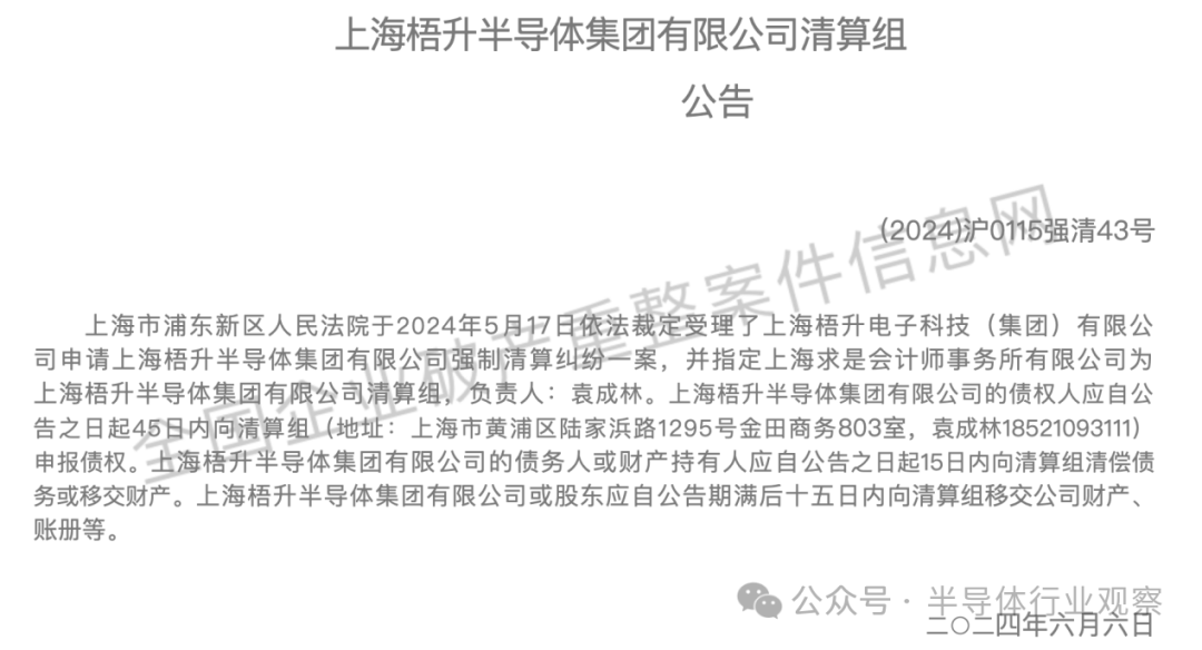 2024年5月17日,上海市浦東新區(qū)人民法院依法裁定受理了上海梧升電子科技(集團(tuán))有限公司申請上海梧升半導(dǎo)體集團(tuán)有限公司強(qiáng)制清算糾紛一案。6月6日,該法院又發(fā)布了上海梧升半導(dǎo)體清算組公告。上海梧升半導(dǎo)體成立于2021年1月27日,主體業(yè)務(wù)聚焦于OLED顯示驅(qū)動(dòng)、微控制器以及CIS圖像傳感芯片的設(shè)計(jì)與制造。
