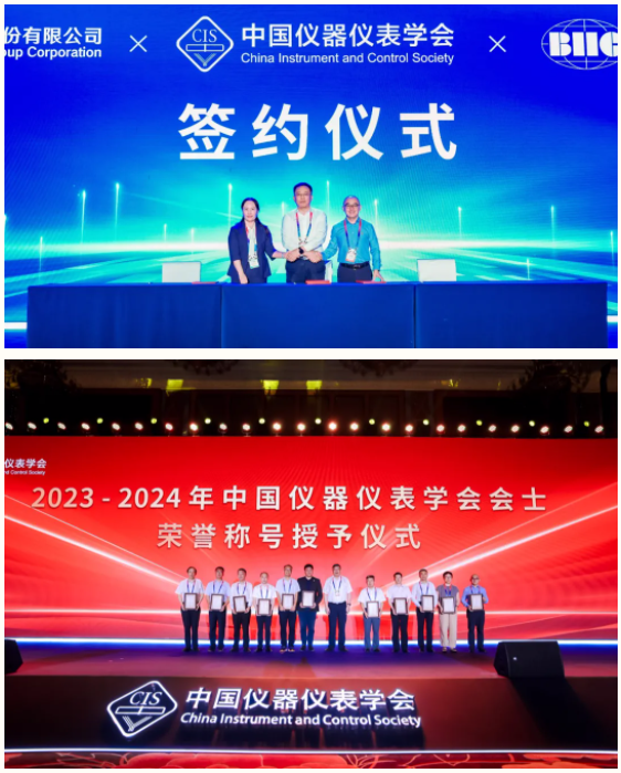 在中國儀器儀表學(xué)會副理事長、天津大學(xué)曾周末教授主持的簽約儀式上,中國儀器儀表學(xué)會與漢威科技集團(tuán)股份有限公司、北京京儀集團(tuán)有限責(zé)任公司達(dá)成合作,開展儀器儀表關(guān)鍵核心技術(shù)研究。同時(shí)舉行2023-2024年中國儀器儀表學(xué)會會士榮譽(yù)稱號授予儀式、第二批中國儀器儀表學(xué)會高校會員服務(wù)中心授牌儀式,頒發(fā)2024中國儀器儀表學(xué)會科學(xué)技術(shù)獎、2024中國儀器儀表學(xué)會獎學(xué)金等。最后,中國儀器儀表學(xué)會副理事長兼秘書長張彤做會議總結(jié),電子科技大學(xué)與國防科技大學(xué)進(jìn)行年會會旗交接儀式。