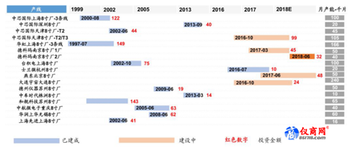 雖然2017年以來8寸硅片價格上漲10%以上,但是從長周期來看當(dāng)前8寸硅片價格仍處于歷史低位,從2007年至今8寸硅片價格下降約40%,大部分硅片廠的8寸硅 片產(chǎn)品已虧損多年,因此即使8寸硅片價格上漲,硅片巨頭的擴產(chǎn)意愿仍較小。另外 硅片的擴產(chǎn)周期至少一年及以上,因此我們認(rèn)為短期內(nèi)8寸硅片短缺、價格上漲的態(tài)勢將會延續(xù),硅片產(chǎn)能短缺或許將成為限制下游8寸晶圓廠產(chǎn)能完全釋放的瓶頸。