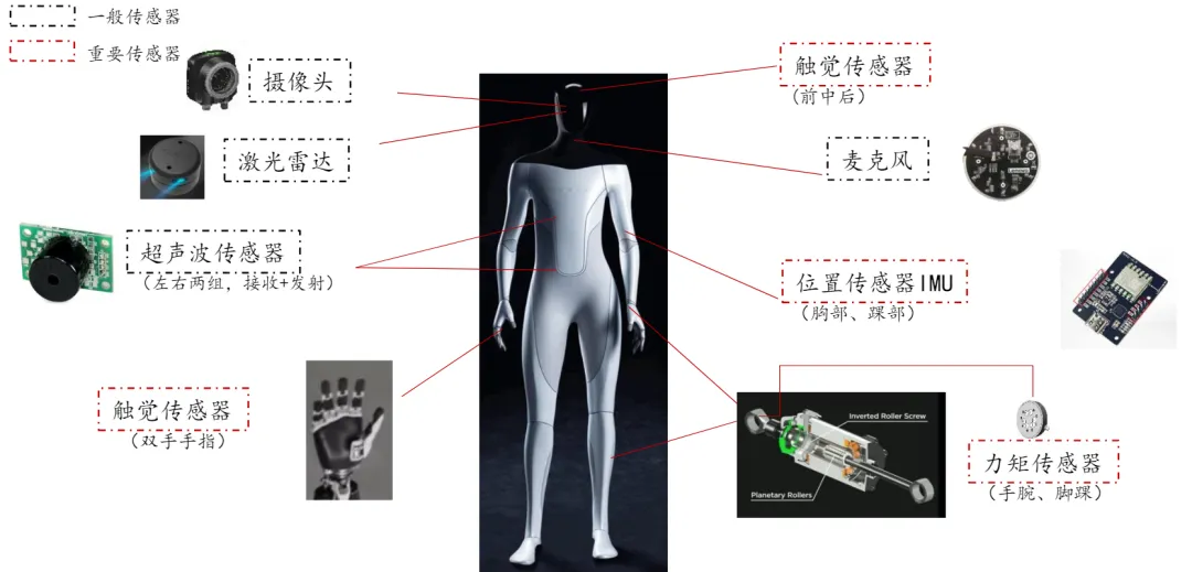 圖2:人形機(jī)器人中用到的傳感器(概覽)