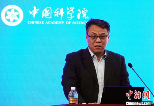 中國科學(xué)院微電子研究所劉新宇研究員介紹首款國產(chǎn)高壓抗輻射碳化硅(SiC)功率器件研制相關(guān)情況。中新網(wǎng)記者 孫自法 攝
