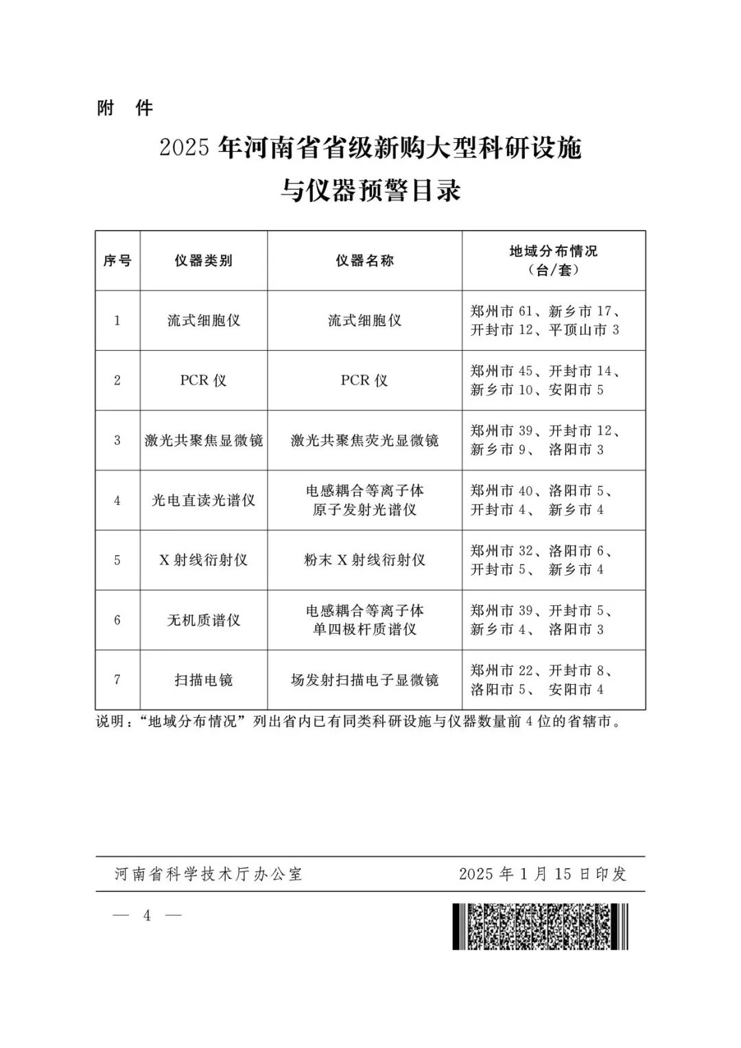 該預(yù)警目錄由河南省科學(xué)技術(shù)廳、河南省財(cái)政廳、河南省教育廳、河南省衛(wèi)生健康委員會(huì)依據(jù)2024年河南省大型科研設(shè)施與儀器資源調(diào)查數(shù)據(jù),在綜合分析價(jià)值50萬(wàn)元及以上大型科研設(shè)施與儀器總量、年平均運(yùn)行機(jī)時(shí)、地域分布等多種要素的基礎(chǔ)上,組織專(zhuān)家對(duì)全省擁有數(shù)量較多但利用率不高的大型科研設(shè)施與儀器進(jìn)行分析論證,進(jìn)行編制。
