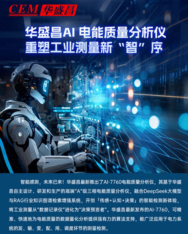 近日,華盛昌在其微信官方平臺重磅推出了搭載DeepSeek大模型的電力檢測新產品“AI-7760電能質量分析儀”。