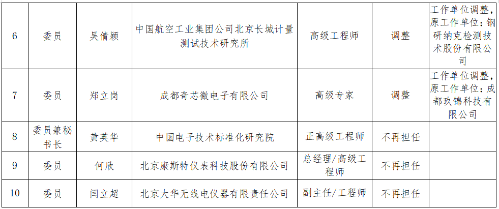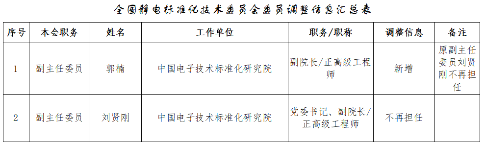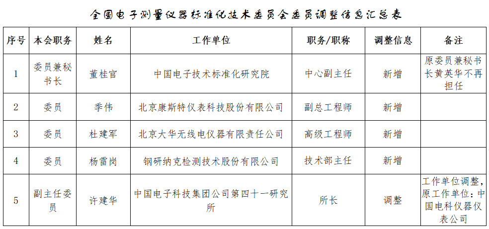 附:全國電子測量儀器標準化技術(shù)委員會和全國靜電標準化技術(shù)委員會分別公示委員調(diào)整情況。