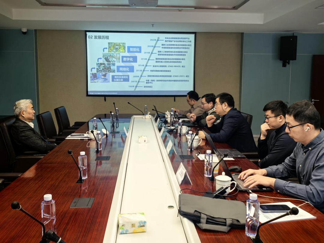 譚建榮院士參觀了智能制造綜合試驗(yàn)、智能制造安全一體化、工業(yè)互聯(lián)網(wǎng)信息安全靶場(chǎng)、高端醫(yī)療裝備及零部件、全網(wǎng)絡(luò)化工業(yè)測(cè)控及單對(duì)線以太網(wǎng)(APL)等科研試驗(yàn)平臺(tái),以及5G工業(yè)應(yīng)用、工業(yè)智能與預(yù)測(cè)性維護(hù)、開放自動(dòng)化、智能傳感器等實(shí)驗(yàn)室。參觀期間,傳感與儀器中心主任杜曉輝博士匯報(bào)了儀綜所自“十二五”以來支撐科技部、工業(yè)和信息化部開展智能傳感器及儀器儀表、原子級(jí)制造等領(lǐng)域研究工作,以及在MEMS傳感器開發(fā)、特種測(cè)試裝備研制、可靠性穩(wěn)定性技術(shù)研究等方面取得的創(chuàng)新成果;網(wǎng)絡(luò)控制中心主任趙艷領(lǐng)博士匯報(bào)了國內(nèi)外在工業(yè)5G及單對(duì)線以太網(wǎng)等領(lǐng)域的最新研發(fā)進(jìn)展,以及儀綜所聯(lián)合國內(nèi)龍頭企業(yè)推進(jìn)全網(wǎng)絡(luò)化測(cè)控系統(tǒng)生態(tài)建設(shè)和產(chǎn)業(yè)落地的情況;標(biāo)準(zhǔn)化室主任王成城博士匯報(bào)了儀綜所牽頭研制的預(yù)測(cè)性維護(hù)相關(guān)國際標(biāo)準(zhǔn)和國家標(biāo)準(zhǔn),以及圍繞標(biāo)準(zhǔn)建立的算法測(cè)試驗(yàn)證平臺(tái);標(biāo)準(zhǔn)化室正高級(jí)工程師盧鐵林博士介紹了虛實(shí)融合的工業(yè)網(wǎng)絡(luò)安全測(cè)試平臺(tái),以及在火電、工業(yè)5G等場(chǎng)景的安全性攻擊測(cè)試案例。譚建榮院士與現(xiàn)場(chǎng)人員進(jìn)行了深入交流探討。