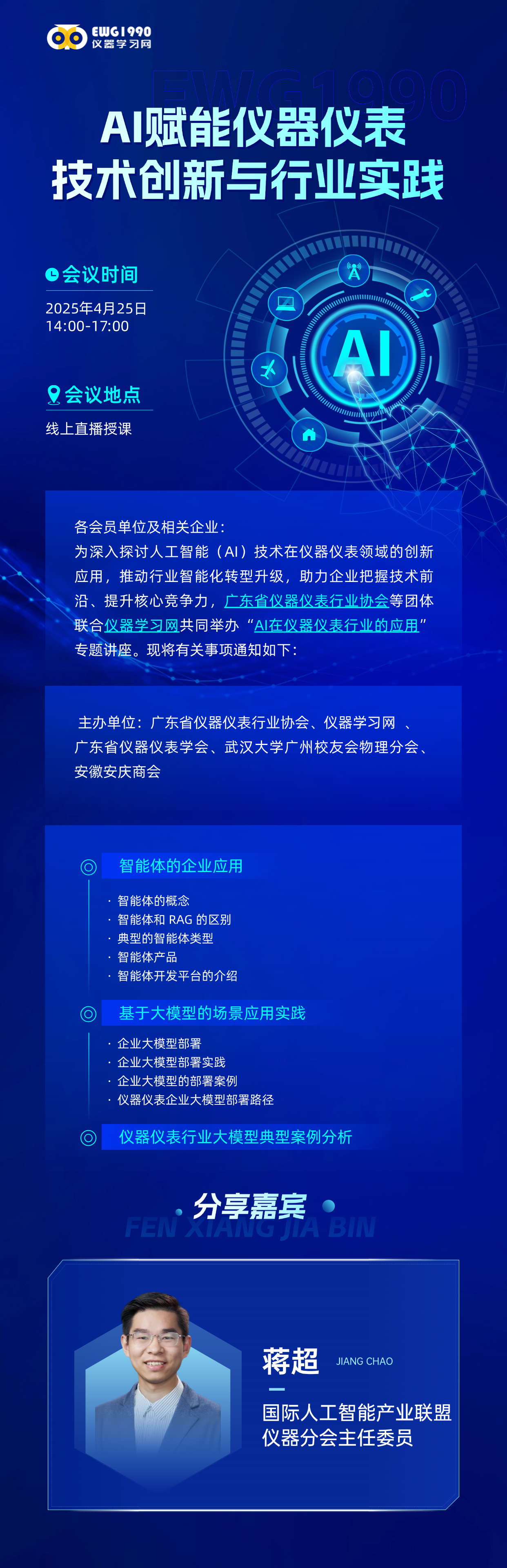 為推動人工智能(AI)技術在儀器儀表領域的創(chuàng)新應用,促進行業(yè)智能化轉型升級,助力企業(yè)把握技術前沿、提升核心競爭力,廣東省儀器儀表行業(yè)協(xié)會聯(lián)合多家機構共同舉辦“AI賦能儀器儀表技術創(chuàng)新與行業(yè)實踐”專題講座。