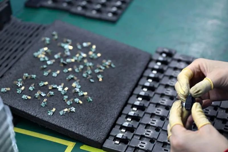 安徽希磁科技股份有限公司的工作人員在組裝一款傳感器。新華社記者 黃博涵 攝