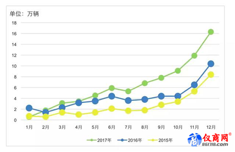 圖1 近三年新能源汽車月度銷量走勢(shì)