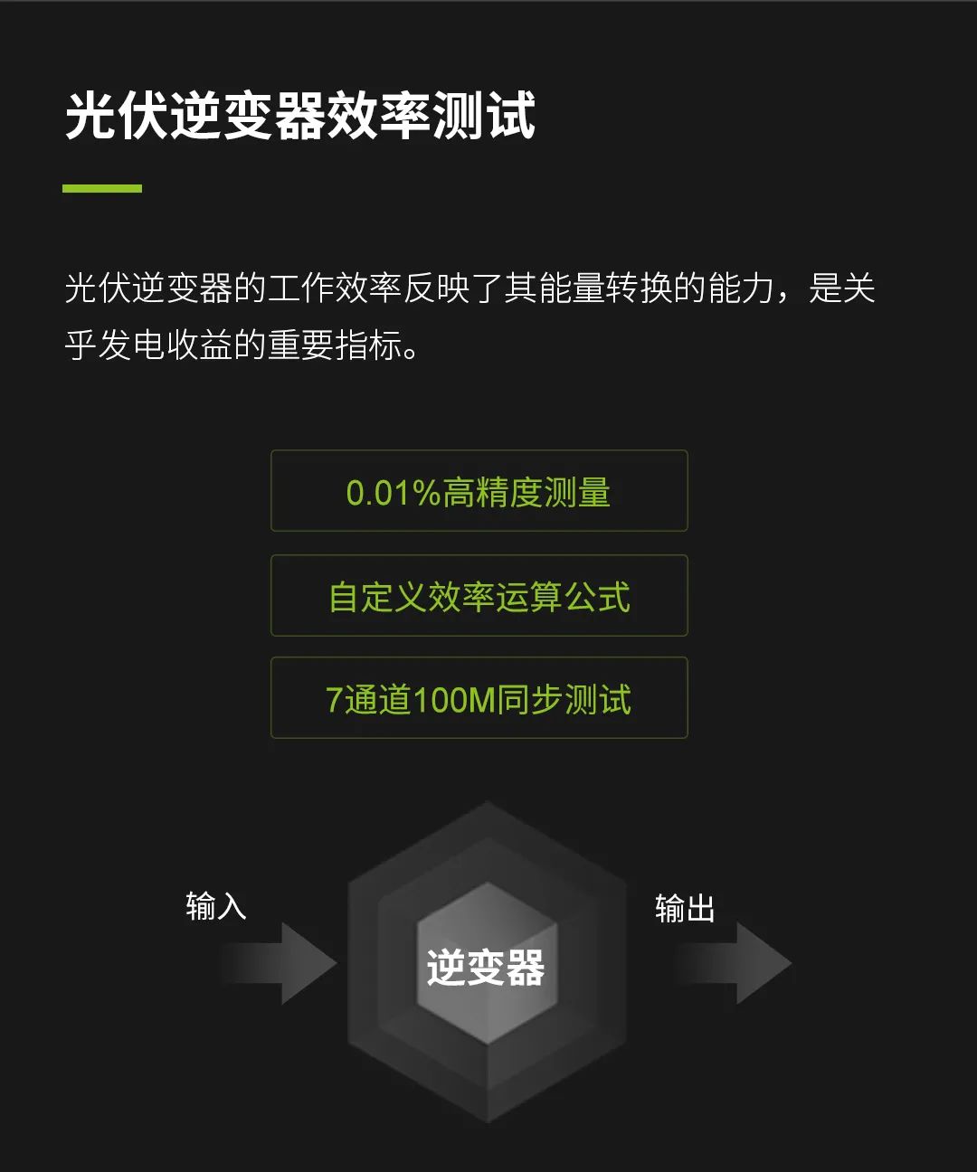 1、高達(dá)0.1%功率測(cè)量精度,準(zhǔn)確測(cè)量轉(zhuǎn)換效率;