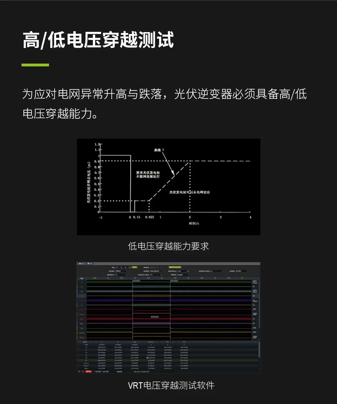 實(shí)驗(yàn)室研發(fā)階段是保障產(chǎn)品性能符合標(biāo)準(zhǔn)的重中之重,因此在此階段需要對(duì)逆變器的整機(jī)特性做精準(zhǔn)的型式測(cè)試,如整機(jī)效率、諧波含量、電壓穿越測(cè)試等。