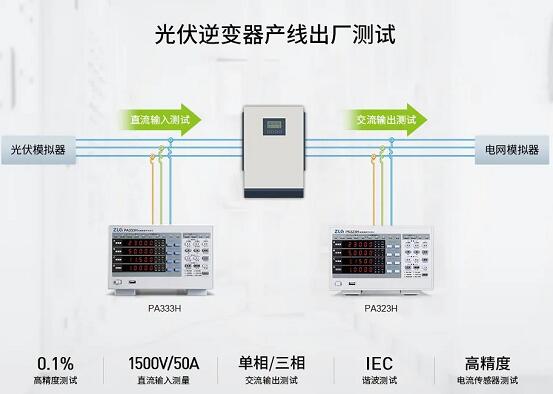 光伏逆變器的產(chǎn)線測(cè)試只需要對(duì)逆變器輸入輸出端進(jìn)行基礎(chǔ)的電參數(shù)測(cè)試,相對(duì)于研發(fā)階段,更注重測(cè)試的穩(wěn)定性與成本。因此,ZLG致遠(yuǎn)電子工程師基于光伏逆變器的產(chǎn)線測(cè)試需求,針對(duì)性推出PA333H+PA323H的功率計(jì)組合方案,分別負(fù)責(zé)直流側(cè)與交流側(cè)的電參數(shù)測(cè)試。