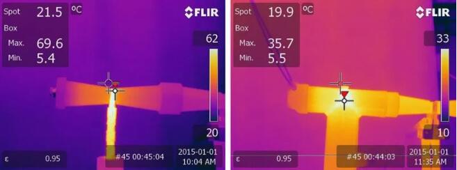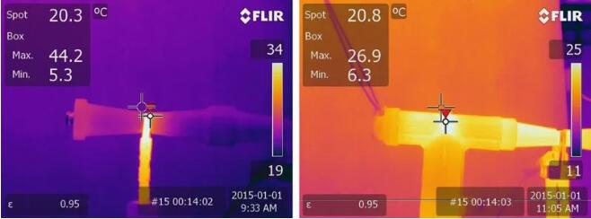 當(dāng)用熱像儀觀察時(shí),異常的斷路肘清楚地顯示為熱損失。