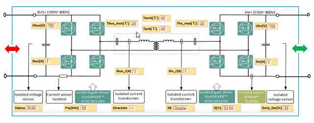 如下圖所示,一個(gè)典型的新型的雙向DC-DC轉(zhuǎn)換電源結(jié)構(gòu),電能既可以從左向右,也可以從右向左流動(dòng),標(biāo)識(shí)也從之前的Input和Output更改為BUS和HV。